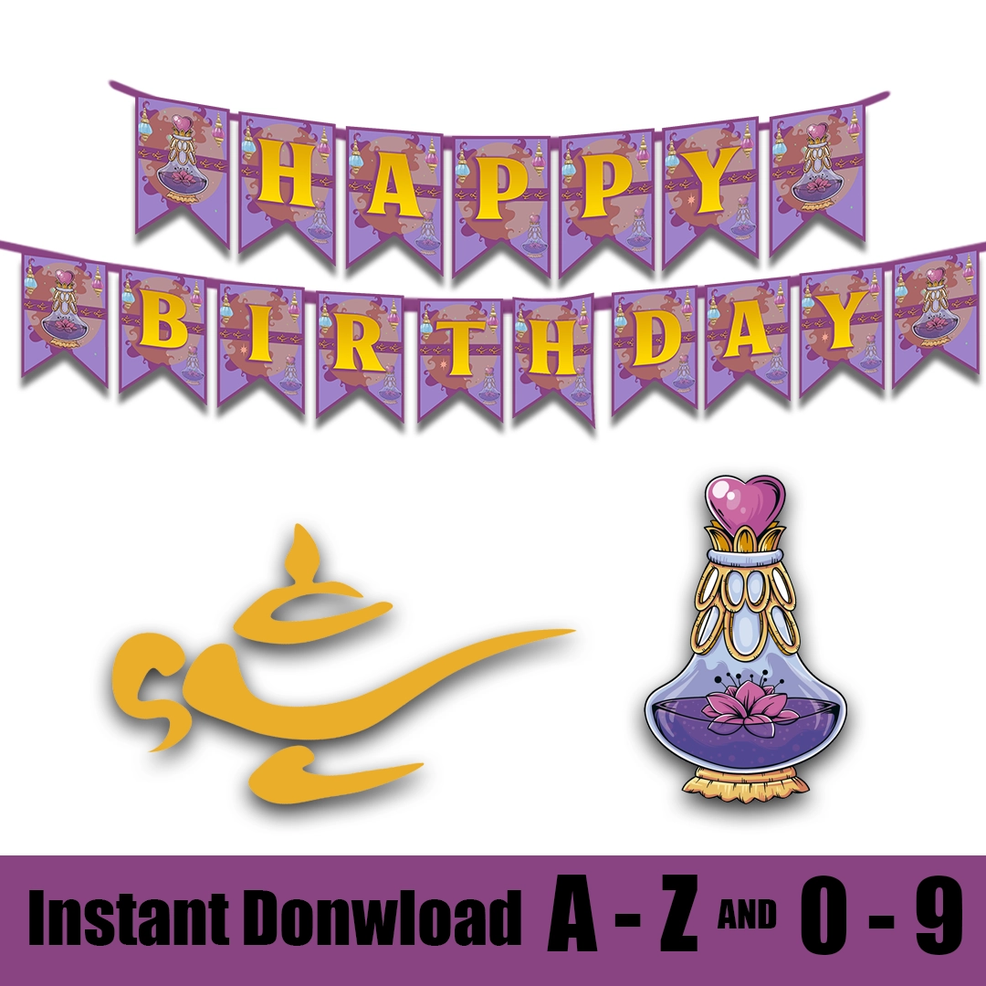 Este banderín de Genio de la lampara es ideal para cualquier tipo de fiesta temática, ya sea un cumpleaños, una reunión con amigos o cualquier evento especial donde quieras sorprender con una decoración original. Además, al ser un Archivo digital, tendrás la comodidad de recibirlo al instante y de utilizarlo tantas veces como necesites, ¡sin esperar por envíos!